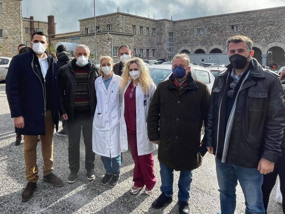 Στις επαφές που είχαν με τους εκπροσώπους των Εργαζομένων και της Ιατρικής Υπηρεσίας του Νοσοκομείου και ιδιαίτερα τον πρόεδρο των εργαζομένων, Ηλία Λιόλιο, εξέφρασαν την υποστήριξη και την αλληλεγγύη τους στο δίκαιο αίτημα τους.