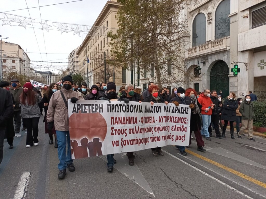 Συνθήματα που ακούστηκαν – Δώστε λεφτά για την υγεία και όχι για τα Rafale και την αστυνομία – Κάθε μέρα  πεθαίνουν εκατό και σεις στα αεροπλάνα  κάνετε αγιασμό κ.ά.