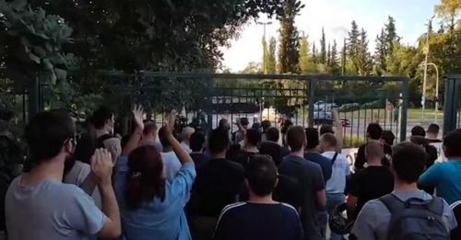 Οι εργαζόμενοι και οι καθηγητές του ΕΜΠ, μαζί με τους φοιτητές έκλεισαν την πύλη της Πολυτεχνειούπολης, αφήνοντας απέξω την πανεπιστημιακή αστυνομία!Διαμηνύουν ότι η επιχείρηση επιβολής της πανεπιστημιακής αστυνομίας δεν θα περάσει.