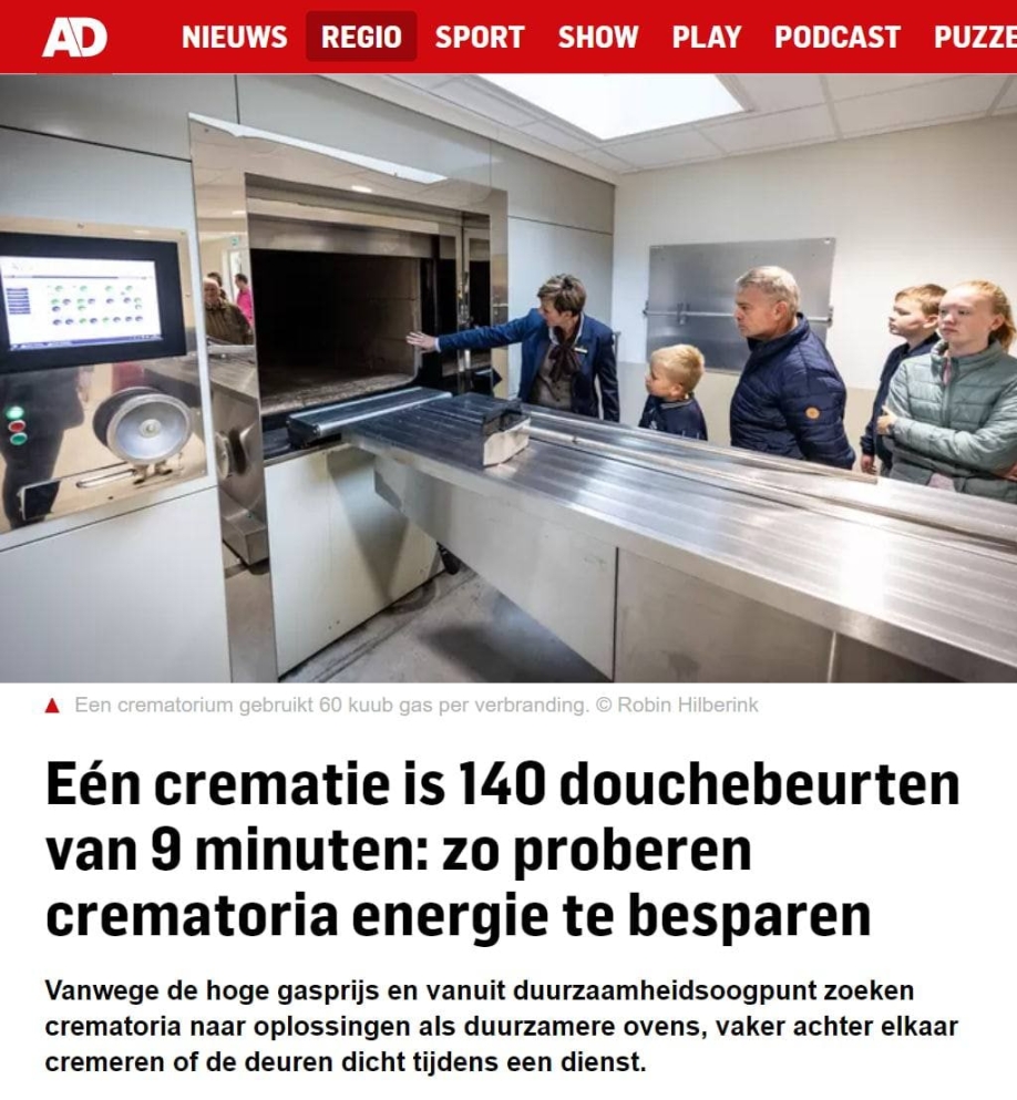 - Τα ολλανδικά κρεματόρια, για εξοικονόμηση αερίου, θα αποτεφρώνουν τους νεκρούς στη σειρά για να μην προλάβουν να κρυώσουν οι φούρνοι. Μια νέα λέξη στην τεχνολογία συνεχούς παραγωγής.